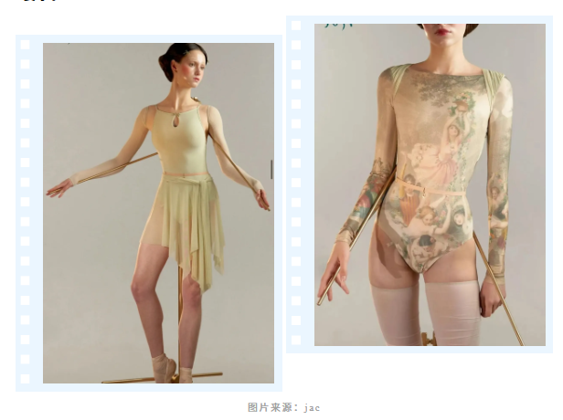从款式来看,芭蕾体服的多样化需求正在释放。细肩带款更适合展示肩颈线条,是夏季和表演场景的热门选择;宽肩带款提供更好的支撑性,适合高强度训练;高领款和半高领款则适合秋冬训练或追求包裹感的消费者。此外,背心款、长袖款、短袖款等不同袖型,以及不同后背设计、装饰细节,都为供应链端提出了更高的柔性生产能力要求。